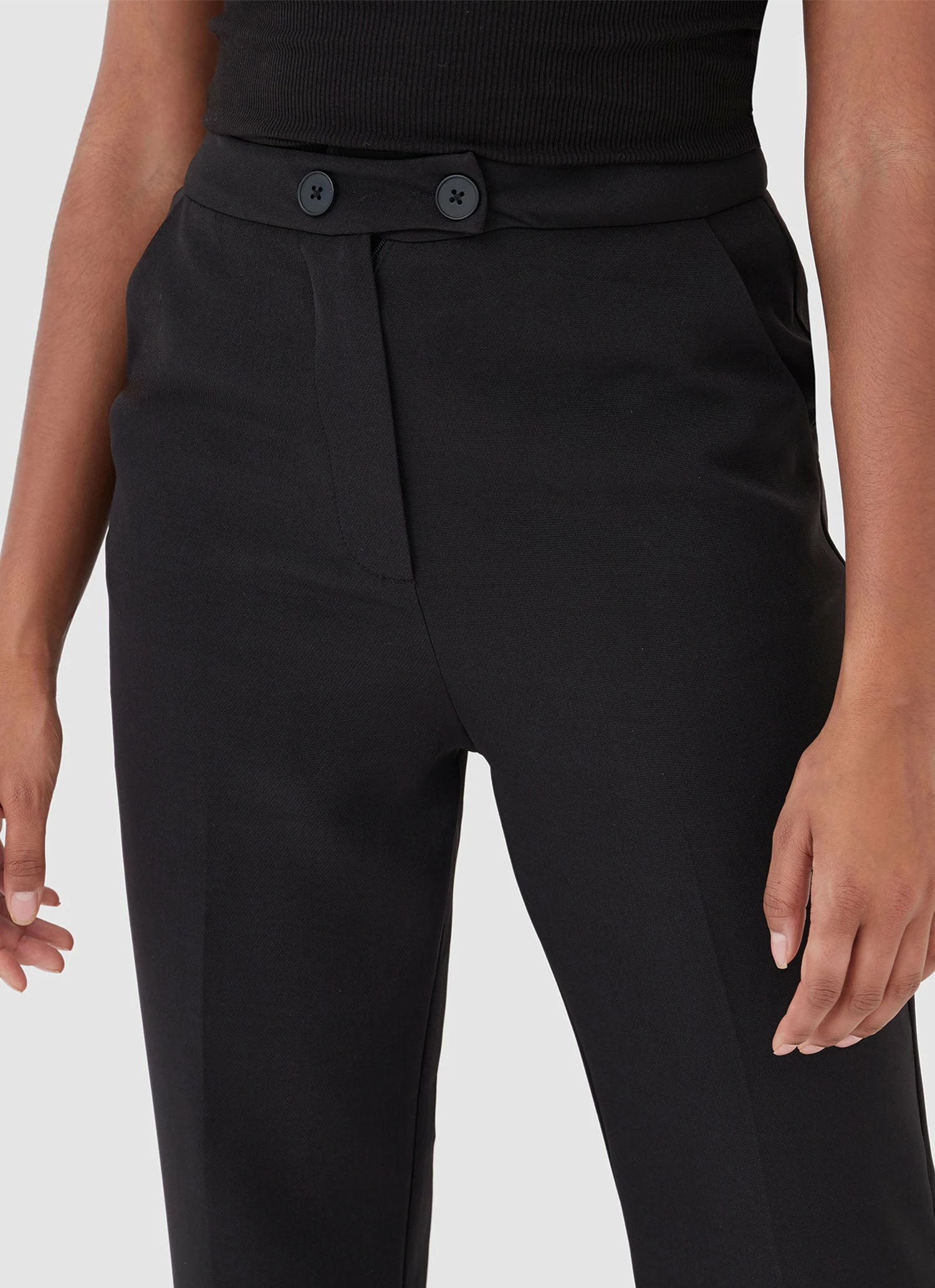 Refined and transeasonal staple. Welcoming the Athenia Trouser, rendered in a classic black this high waist style is cut to a straight leg for a classic look. Ideal for the office wear with a plain top and mules or with the Athenia top for after hours.