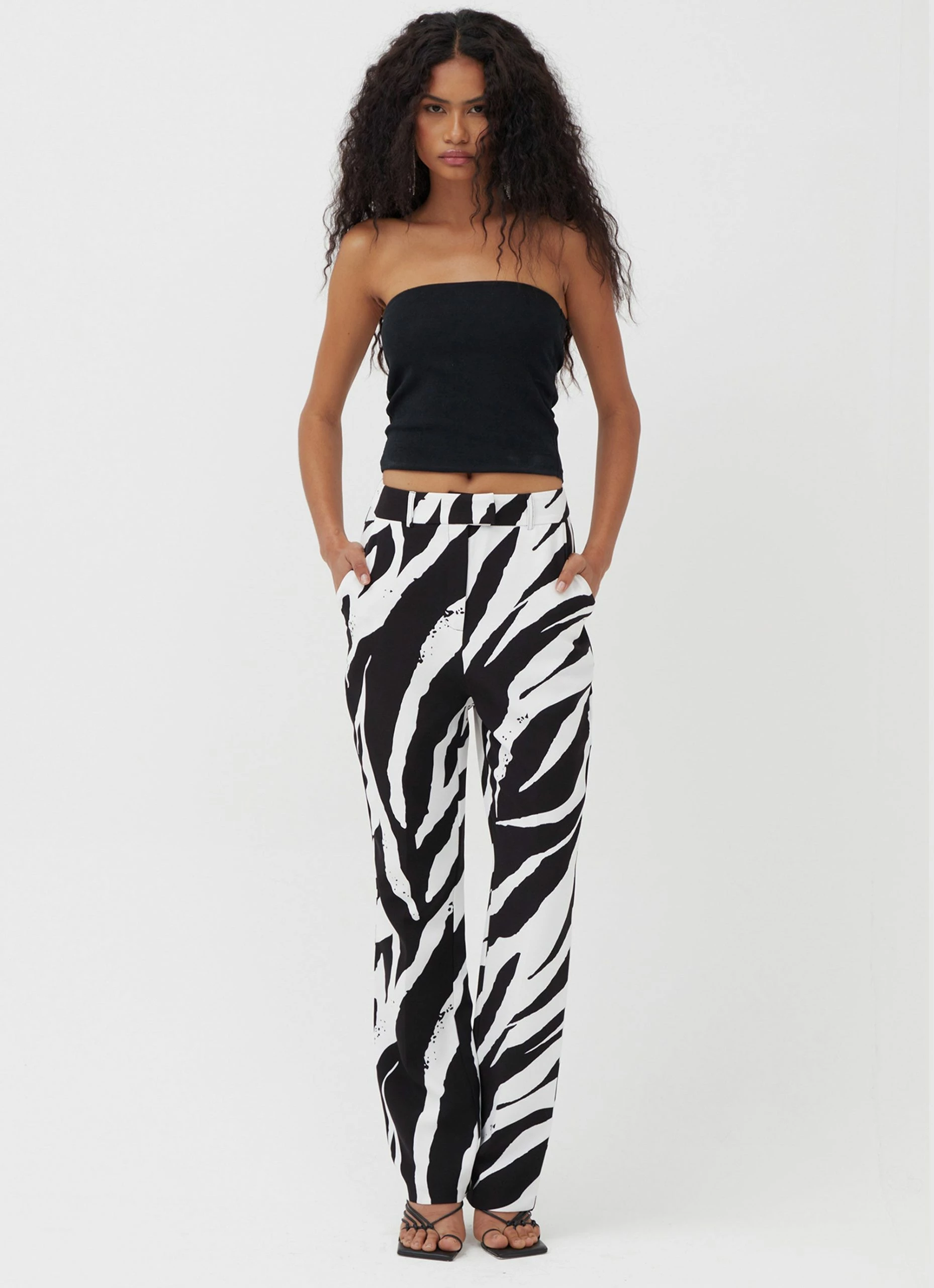 A style that makes a statement. Finished in this season’s bold motif, the Karim trouser has been designed in a standout zebra print for a vibrant design. Coordinate with the matching Karim blazer or wear with a bralet and heels for party season.