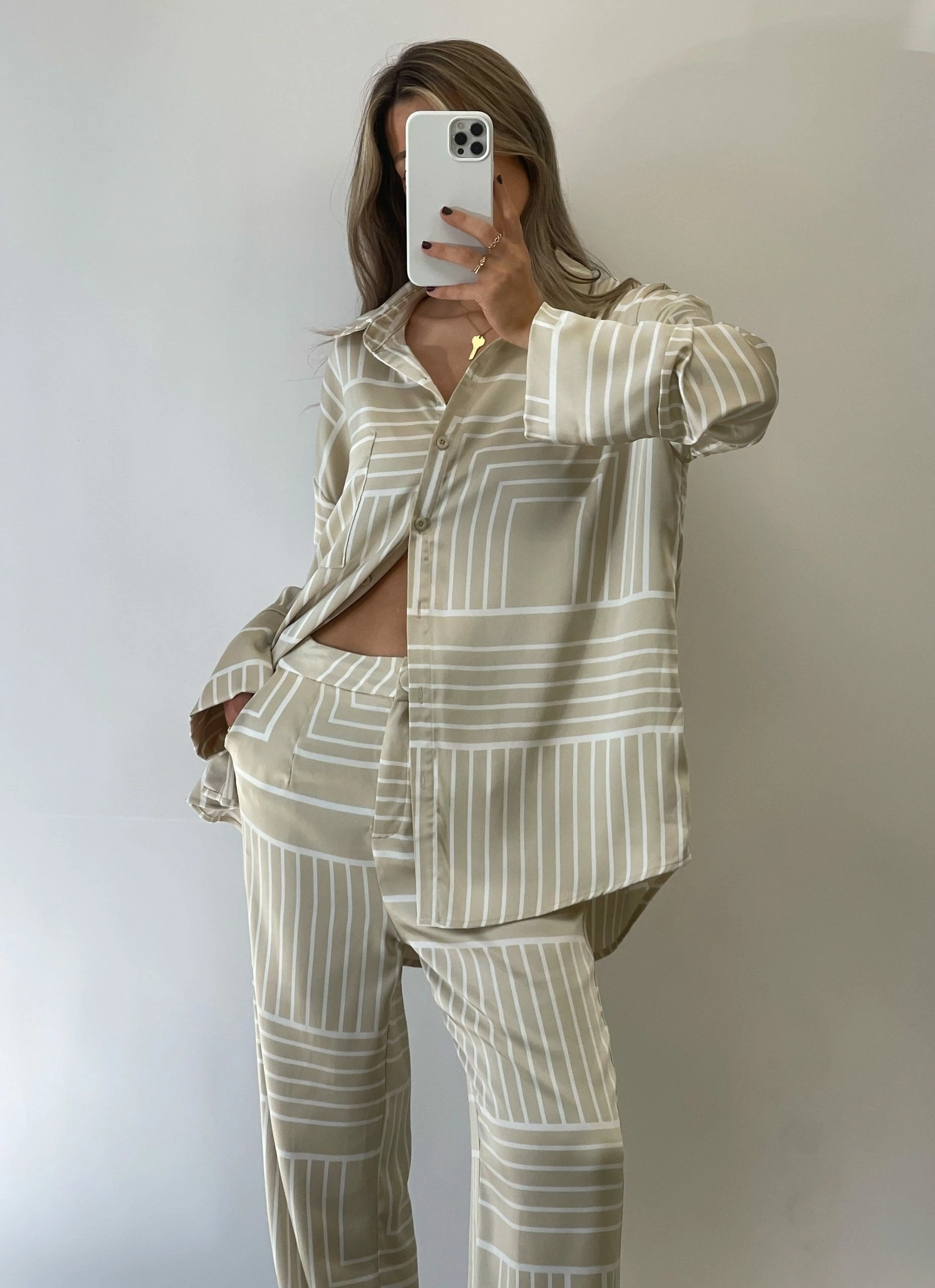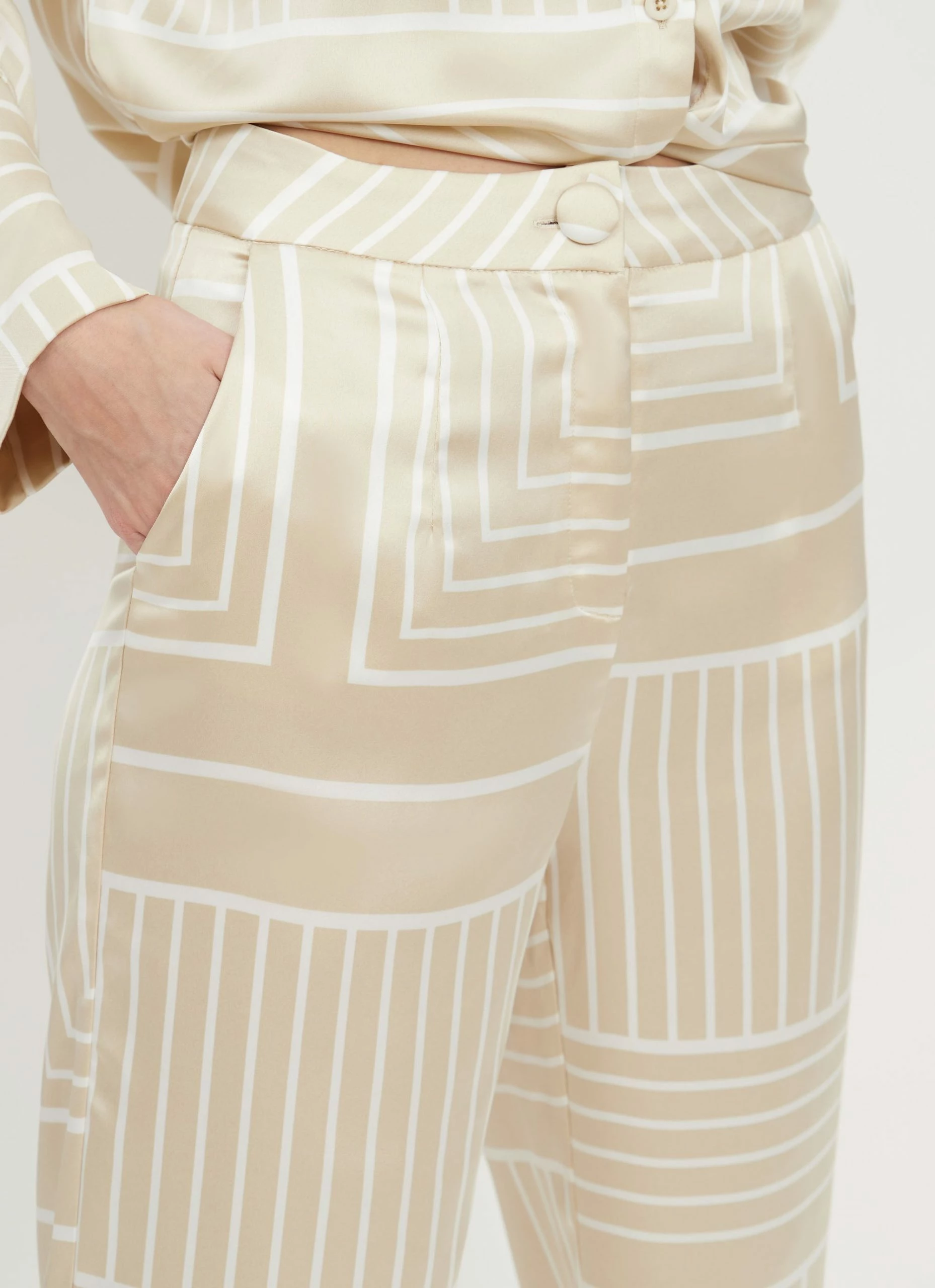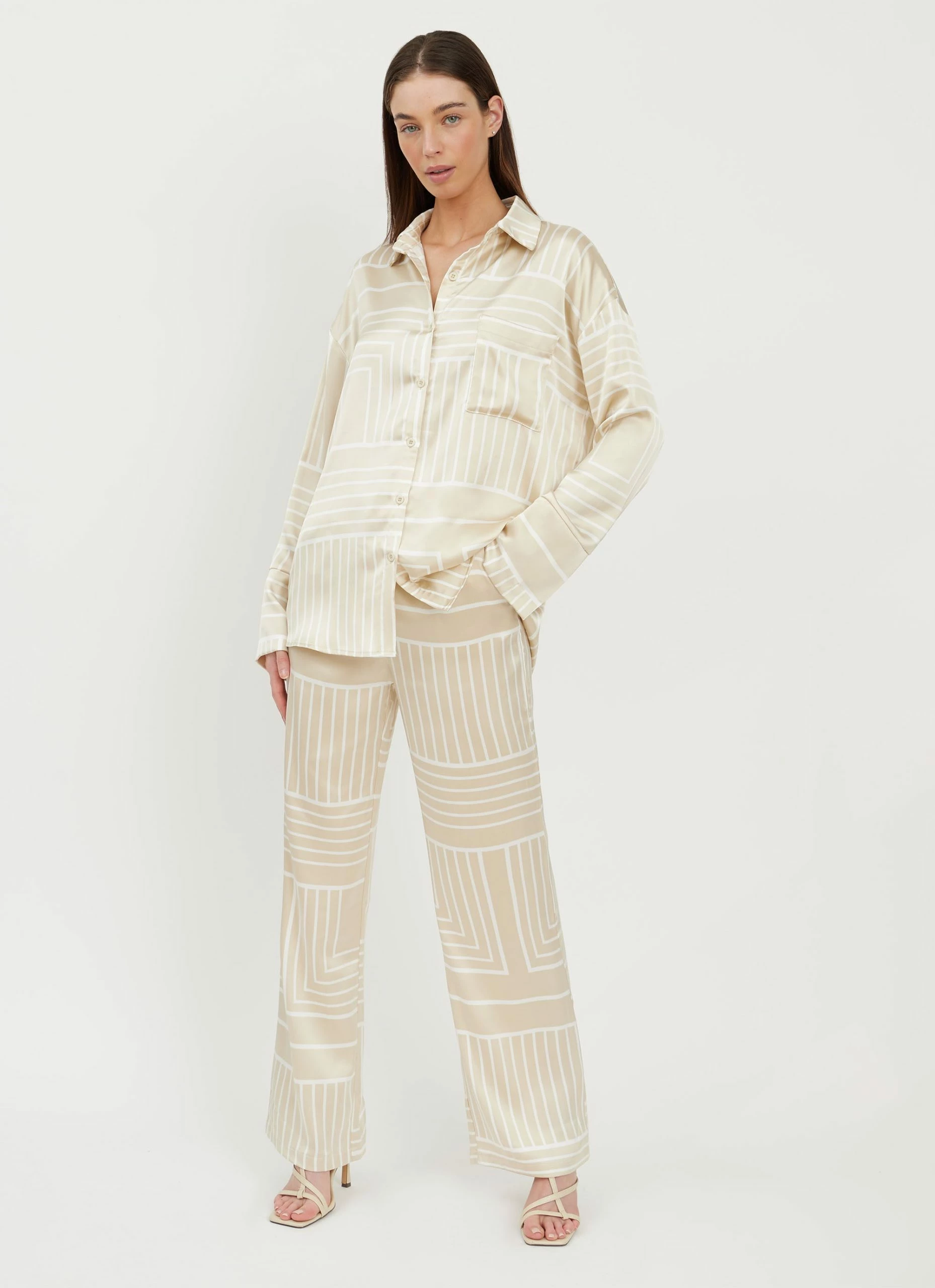 Make a statement in our Norma trouser, a high waisted design crafted in an abstract fabric. With a flattering high waist and wide leg, style with the co-ordinating Norma shirt for the full fit. Simply swap trainers for a heel.