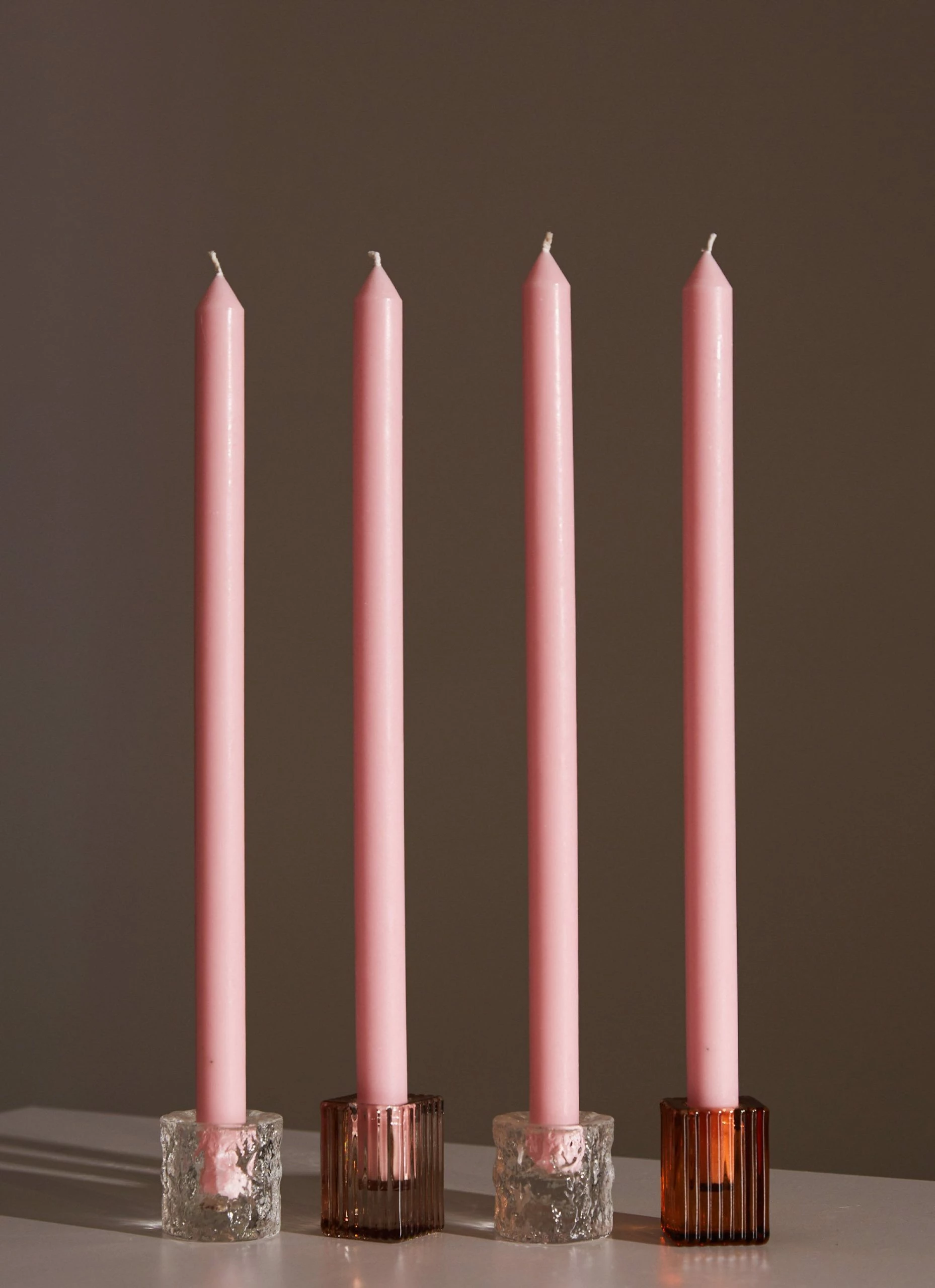 An environmentally friendly, scented dinner candle which burns cleanly and is a solid colour throughout.