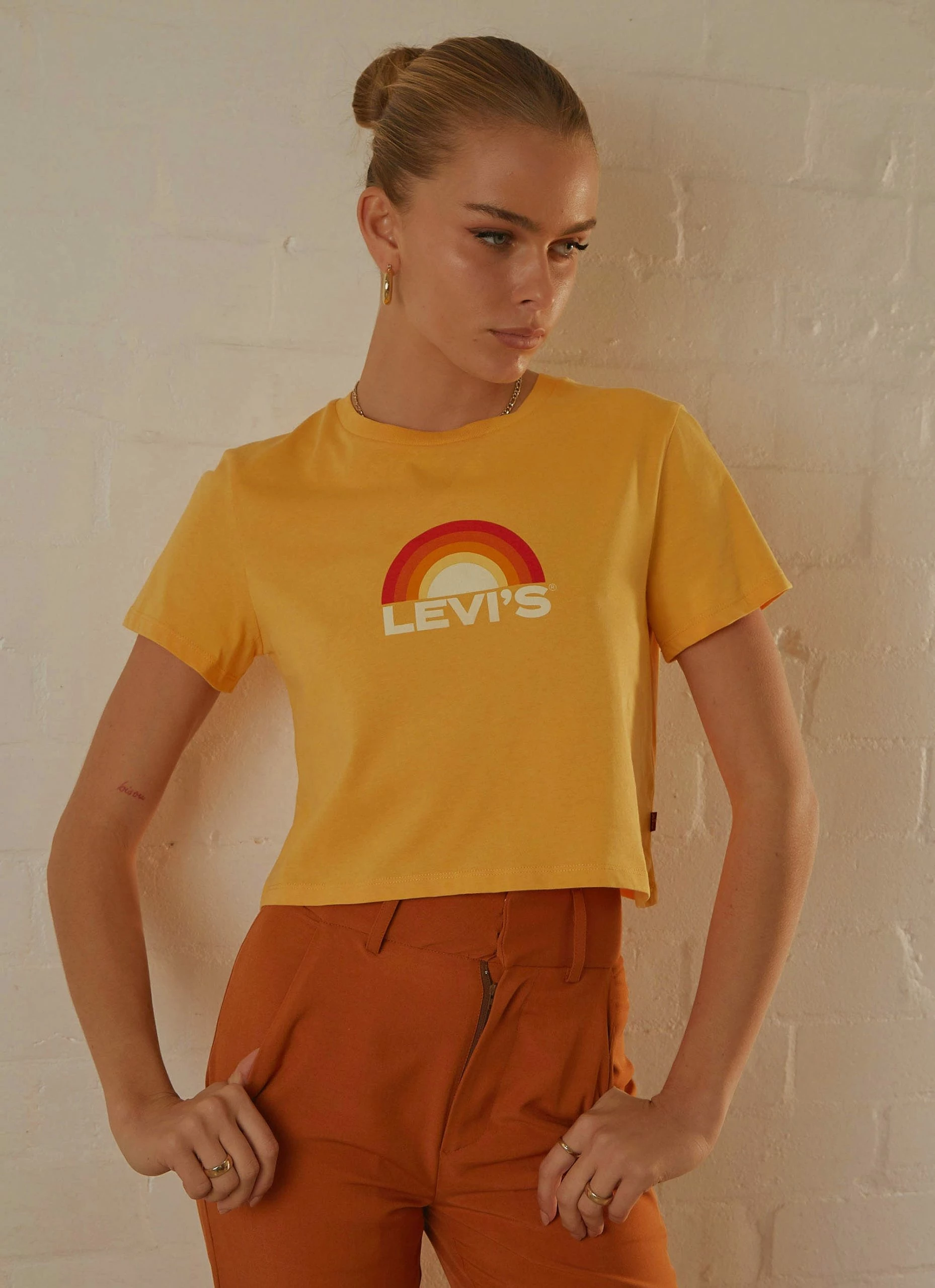 Some things are perfect just the way they are. The classic T-shirt is one of them. That’s why we kept it simple (but fun) with 100% cotton jersey, a cropped fit and an understated logo. Grab your vintage inspired denim and your weekend wardrobe is complete.