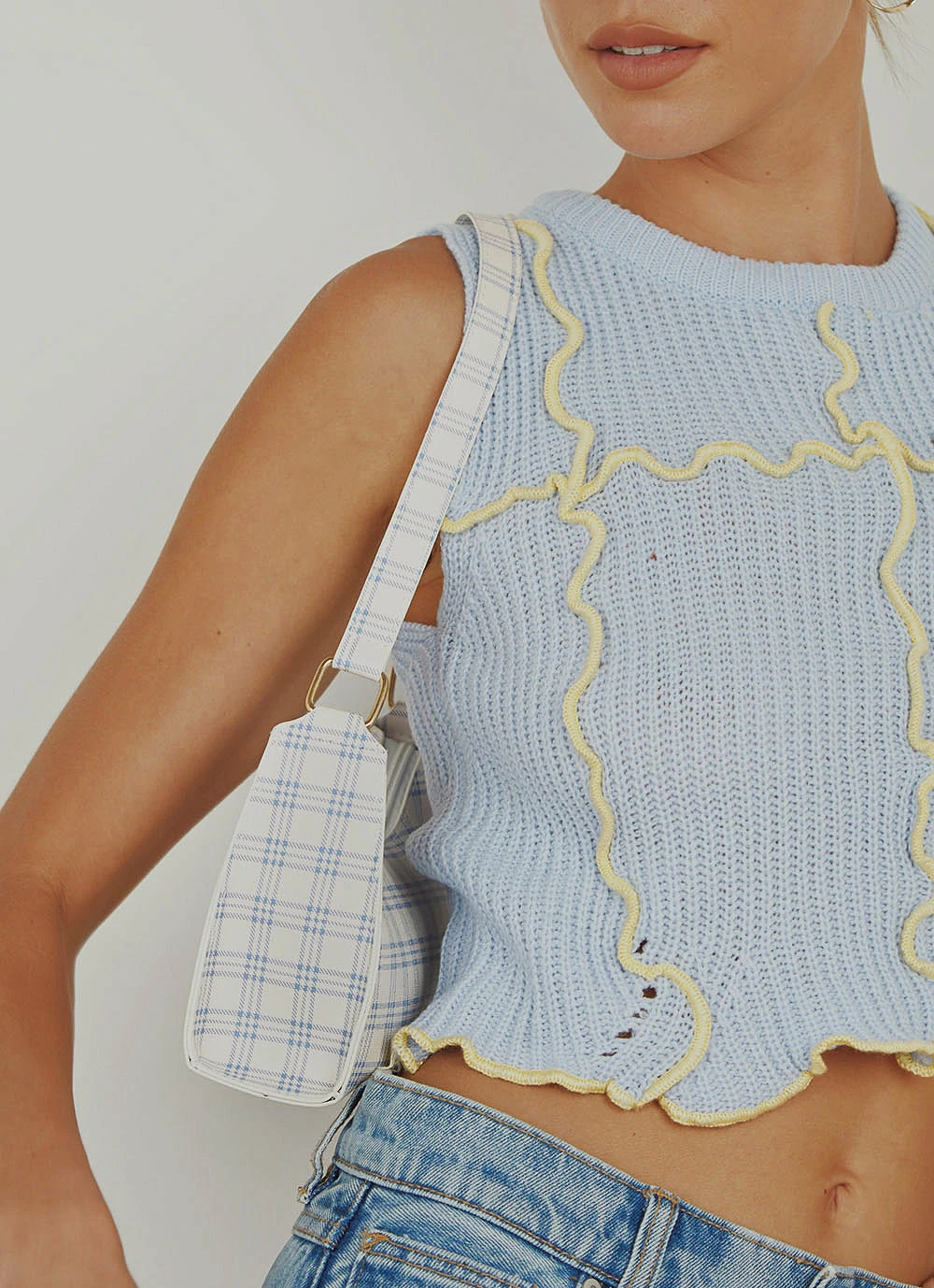 The stylish place to store your things! We love this as a statement bag with a simple outfit. Style it with a cropped cardi and mini skirt.