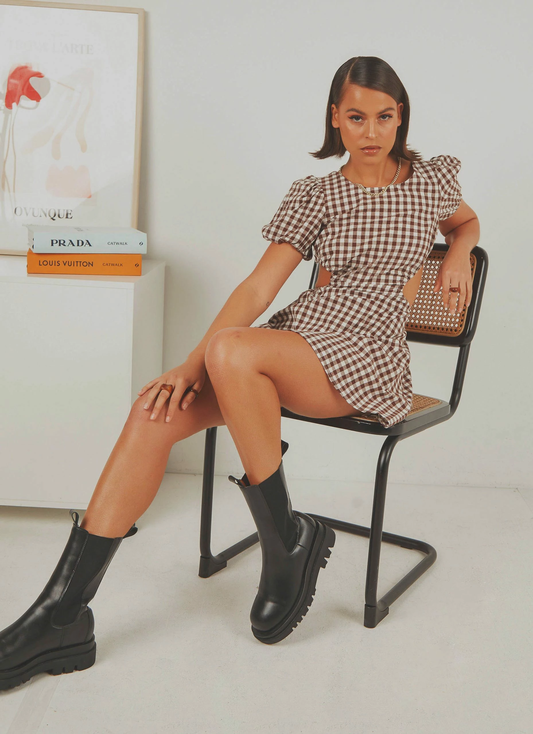 This dress is perfect for that event you have to go to! Dance the night away in this, cute lil mule heels and gold jewellery.