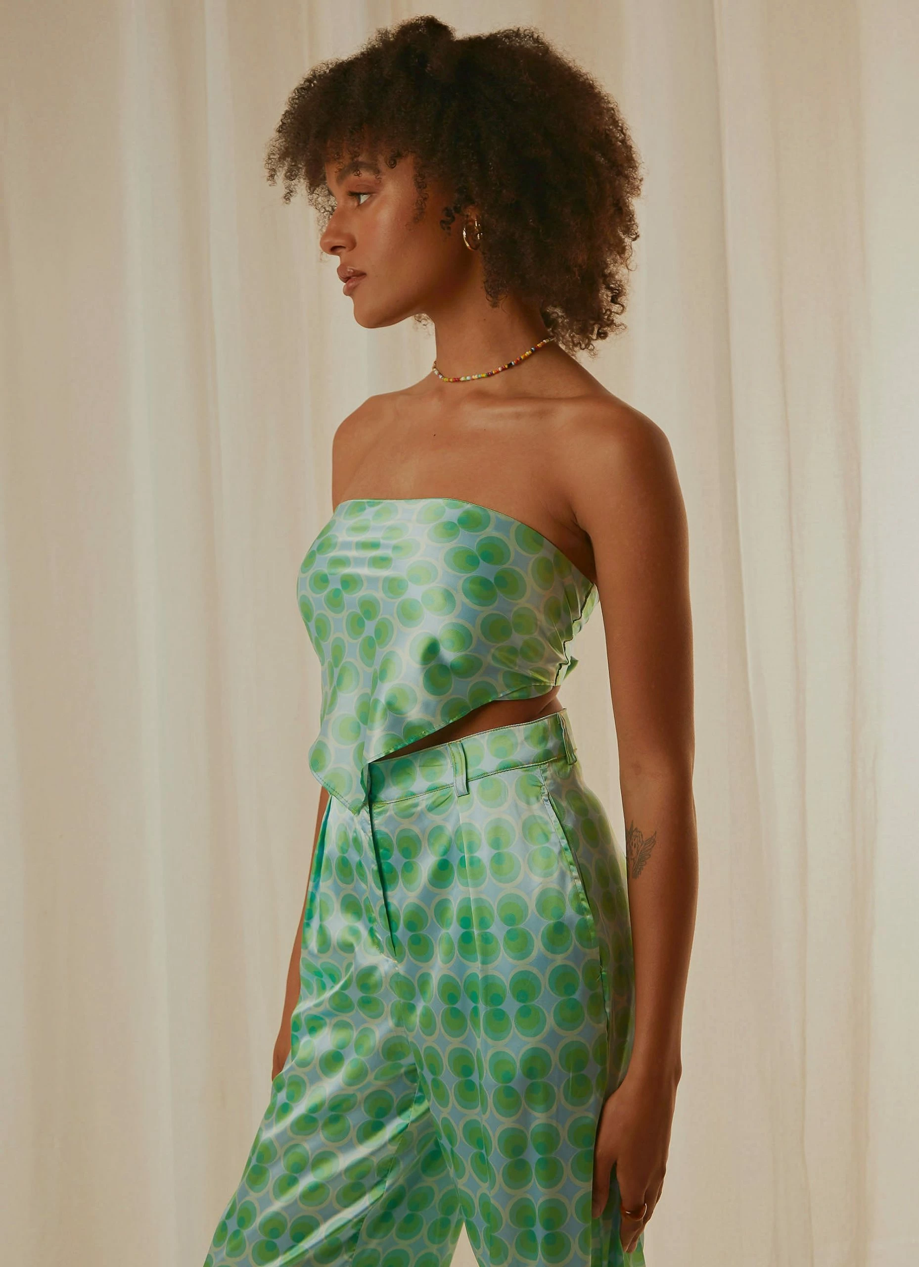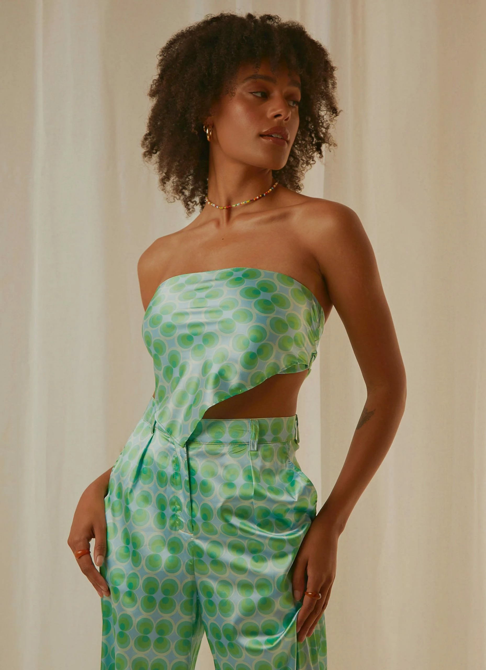 Get your Groove on! We are feeling all the retro vibes with our “Better Retro” Scarf Top. We love this worn withe the matching “Past Treasures” pants and heeled mules for the full vibe.