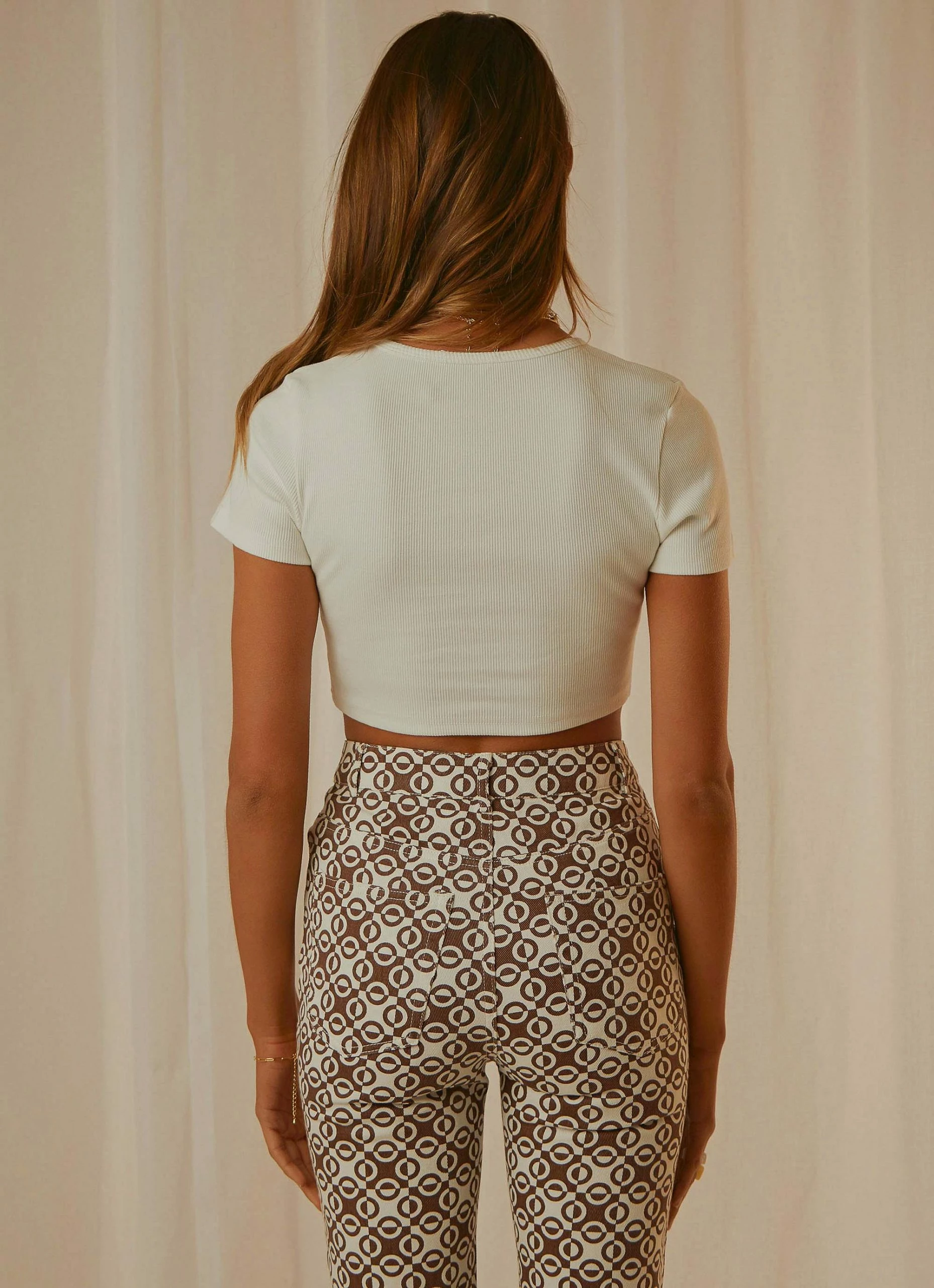We’re feeling all the summer vaycay vibes in the Casa Del Sol Baby Tee! We love this paired with our Electric Avenue pants and platform sandals.