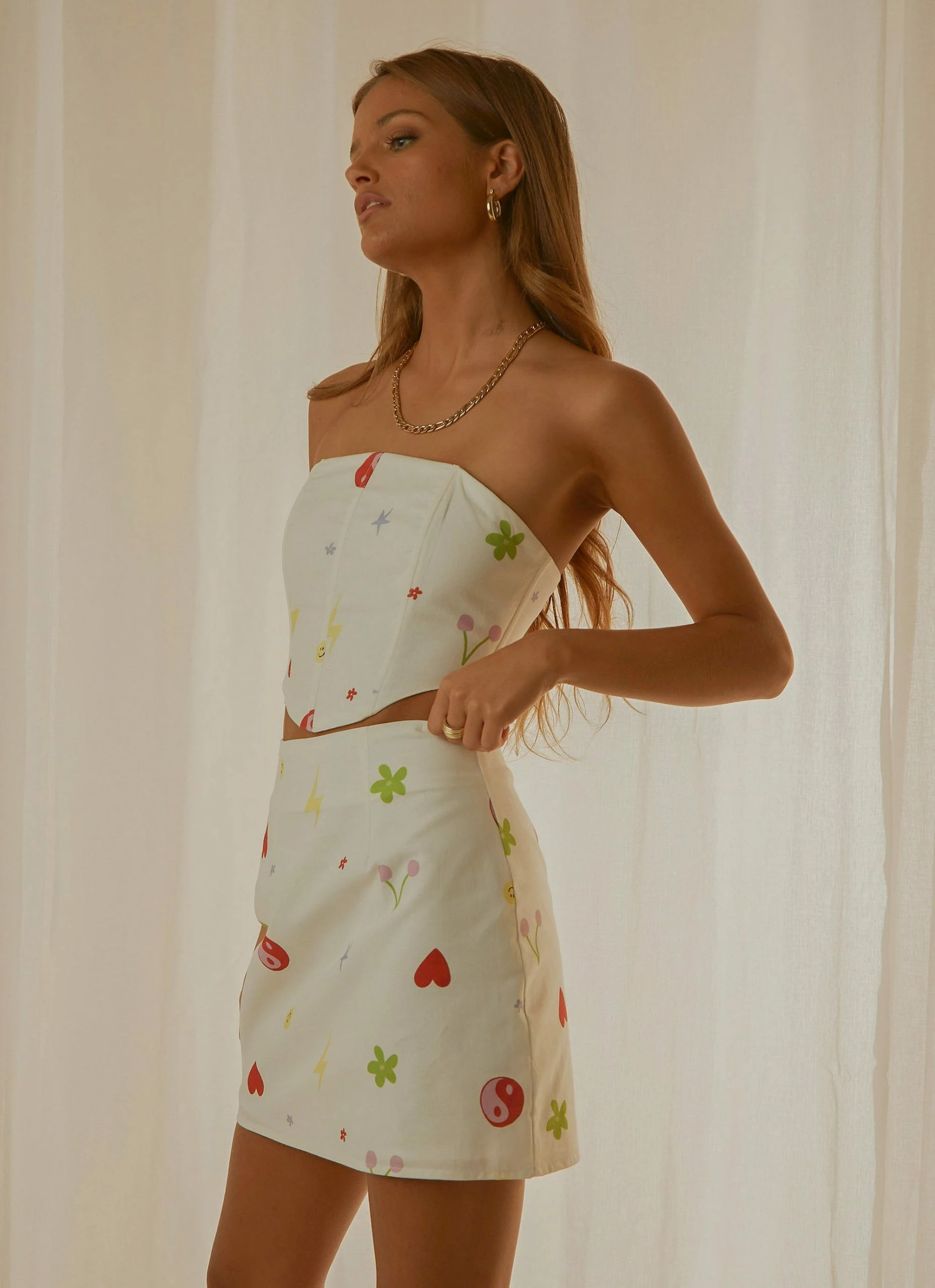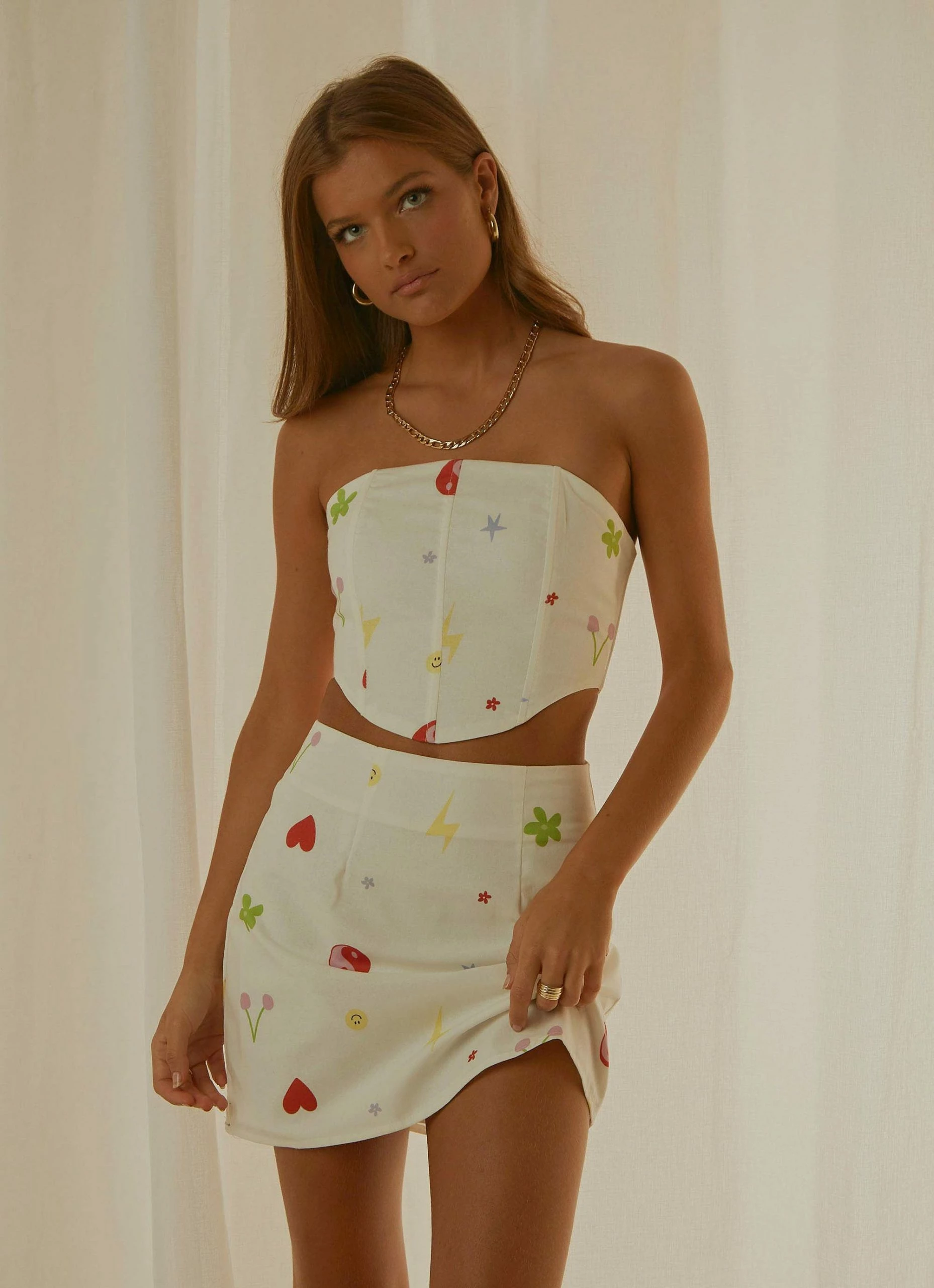 Obsessed is an understatement. Say hello to our “Fashion Flashback Bustier. Cropped in length, with corset style boning throughout, this one is sure to turn heads. We Love this paired with the Morning Market Mini Skirt, simple gold jewellery and heeled mules for a chic look for your next dinner date.