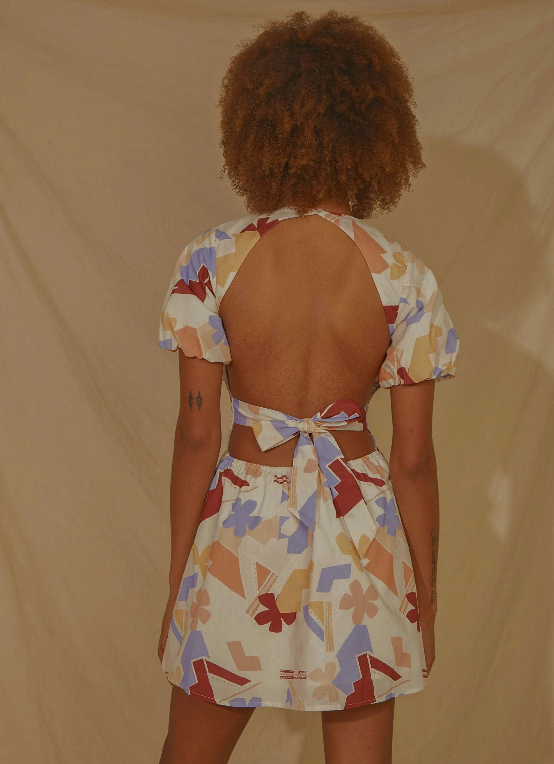 See you at cocktail o’clock! The Lani Linen Mini Dress has a soft abstract print and feminine balloon sleeves with a slinky open back. Perfect for date night or drinks with the gals. We love it styled with a simple earring and strappy heel.