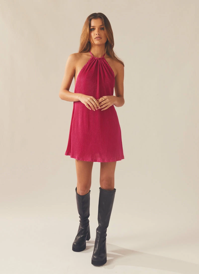 Girl, you’re a show stopper! The Love From Europe Halter Dress has been crafted in plisse fabric in our eye catching magenta colour. This cute ‘lil mini has a sexy low back and high neckline with halterneck closure. Easily styled with your favourite mules or heels.
