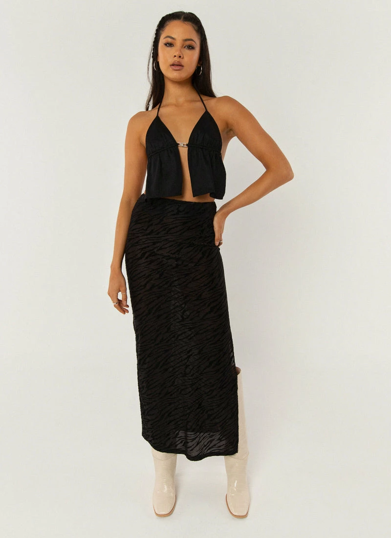 A strappy little halter neck is always a good idea! The Mystic Halter Top features silver hardware detailing between the bust and a sexy open back with single strap ties. Complete the look with the Cosmos Mini Skirt and layered jewellery.