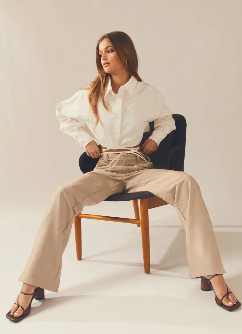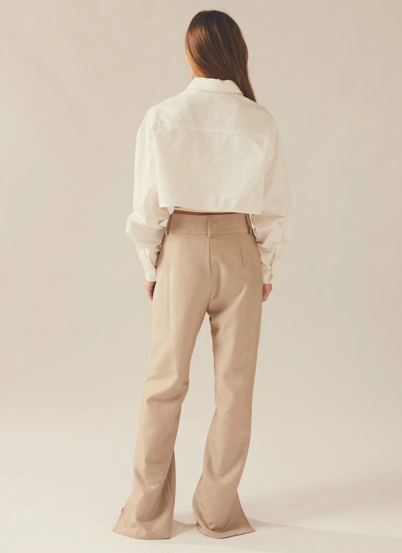 Handpicked for your everyday wardrobe! The Nuance Suit Pants are a tailored pant crafted in a neutral oatmeal hue with stylish splits on the outside of each ankle. We love tonal dressing so layer up with neutral tones and the Tailored To You Tie Shirt.
