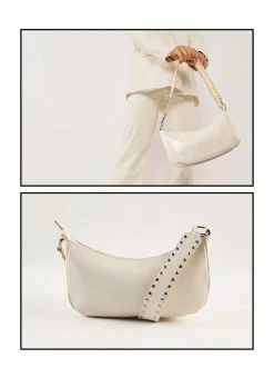 Sprinkle some attitude on your outfit with the Ronni Baguette Bag. Crafted in textured snakeskin print with contrasting silver hardware and studded shoulder strap.