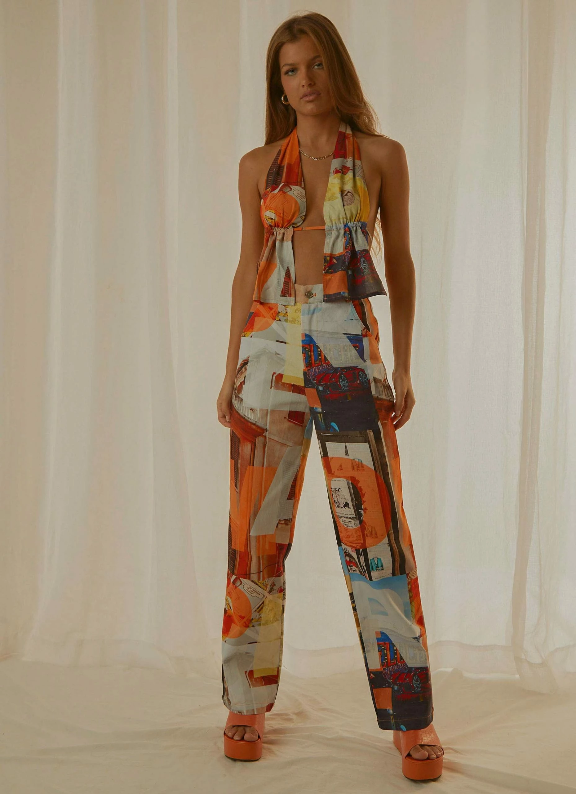 Hello, we’re obsessed! Say hello to our Ticket To Nowhere Pants.We love this one paired with the matching Heading Downtown Top, styled up with heeled mules or dressed down with sneakers for a casual vibe.