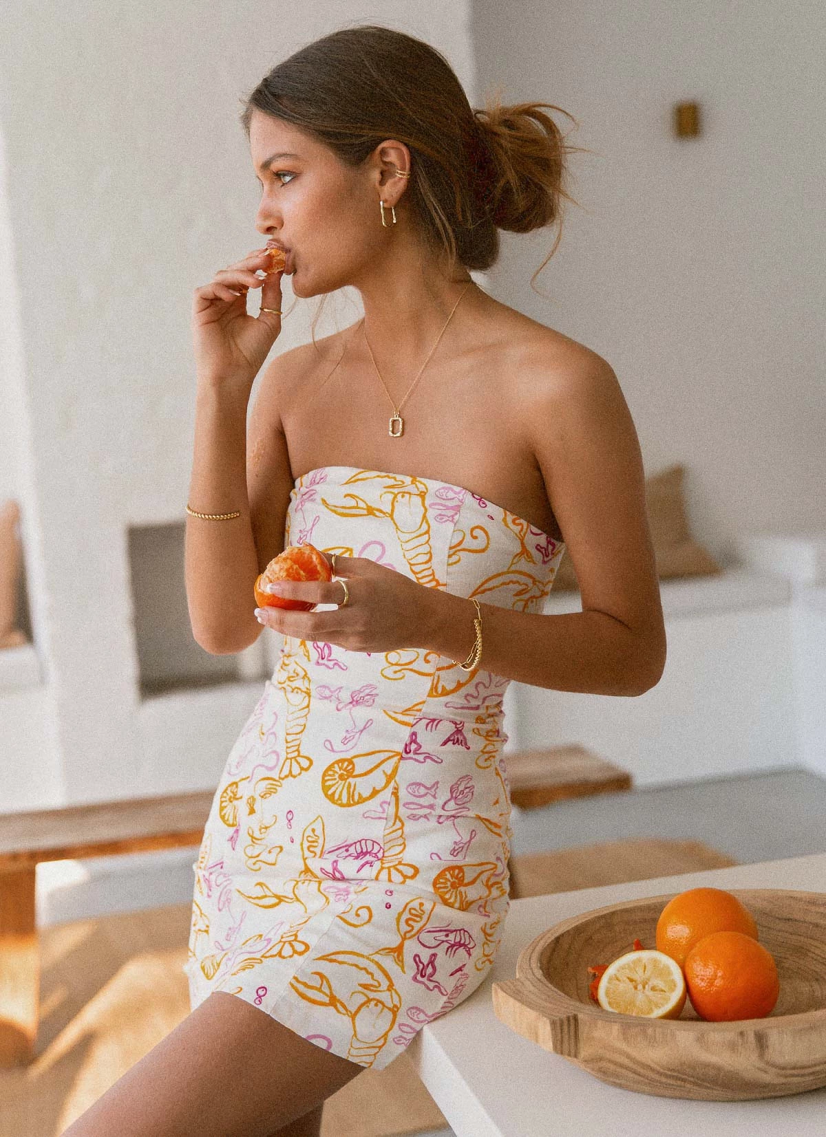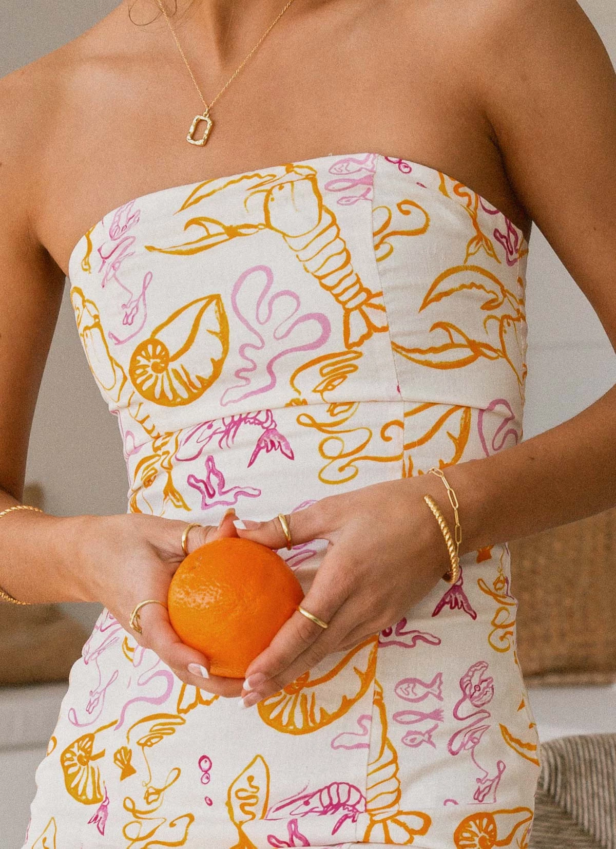 Made for long lunches! The Pranzo Bustier Tube Dress has been crafted in soft linen and features our exclusive Peppermayo x Rikki Day print. Perfect for cocktail o’clock this it’s strapless design, fitted bodice and mini length. Style with an Aperol spritz in hand.