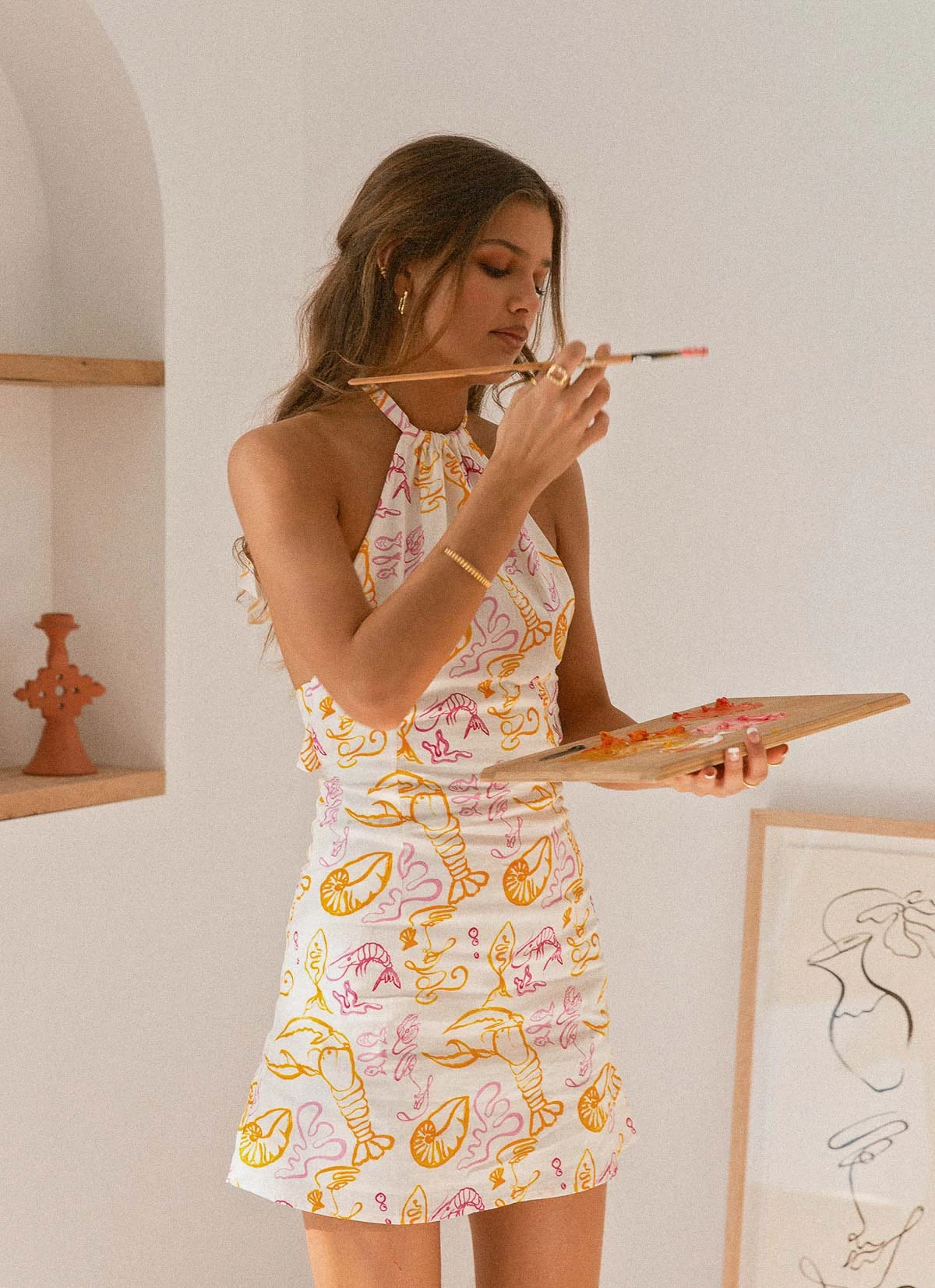 Always chic in the Rosé All Day Linen Mini Dress. Crafted from light, crisp linen with functioning drawstring detailing and slinky open back with thick tie around the waist. Featuring our exclusive Peppermayo x Rikki Day print, simply style back with your favourite mules and chunky gold jewellery for an effortlessly cool cocktail o’clock look.