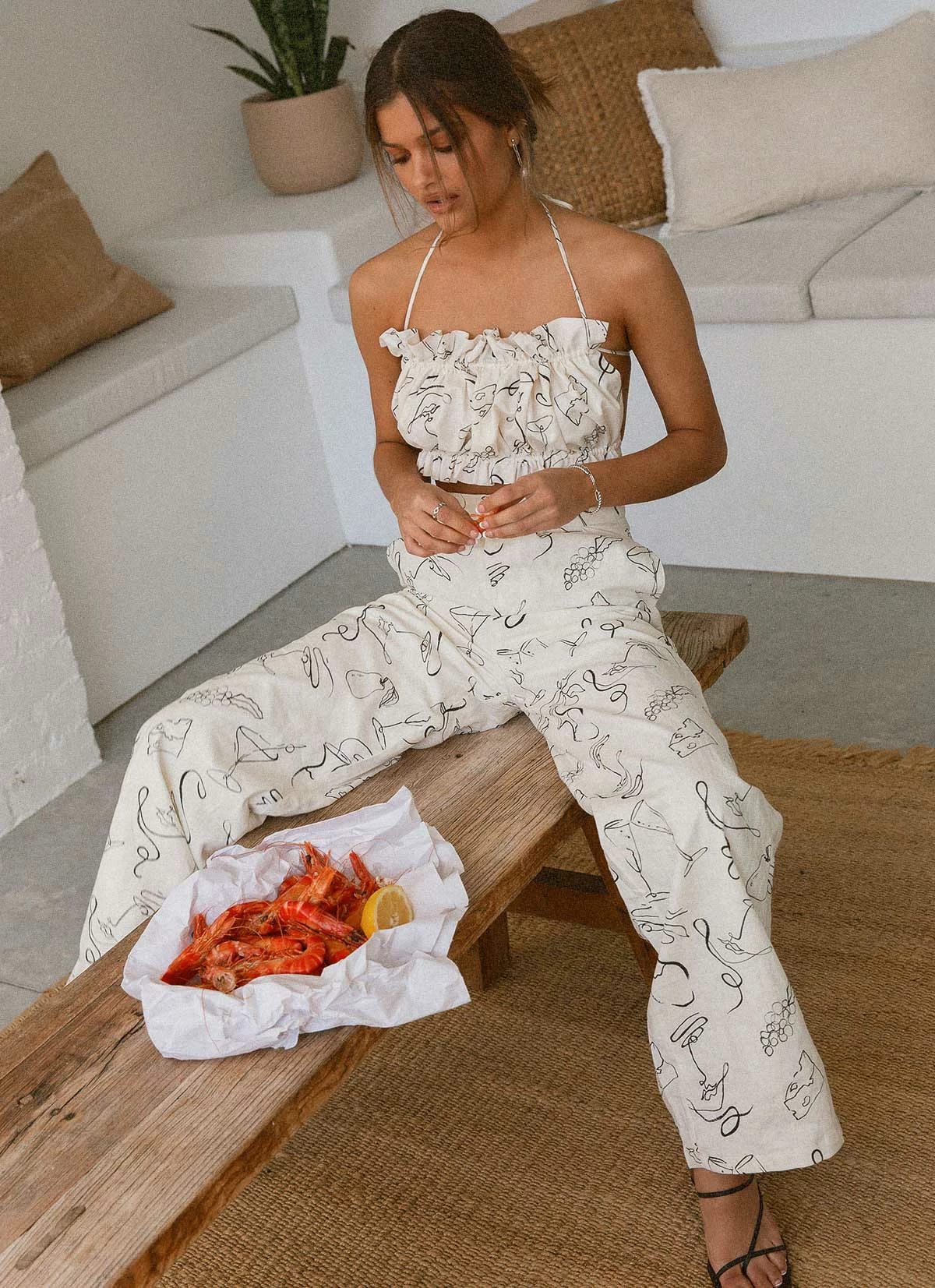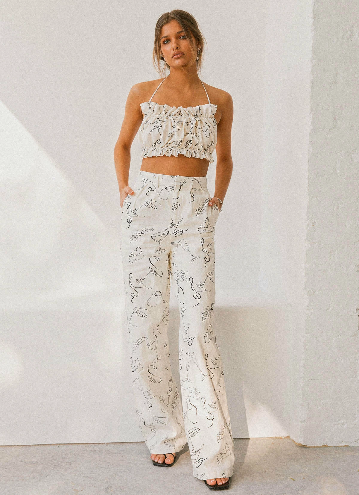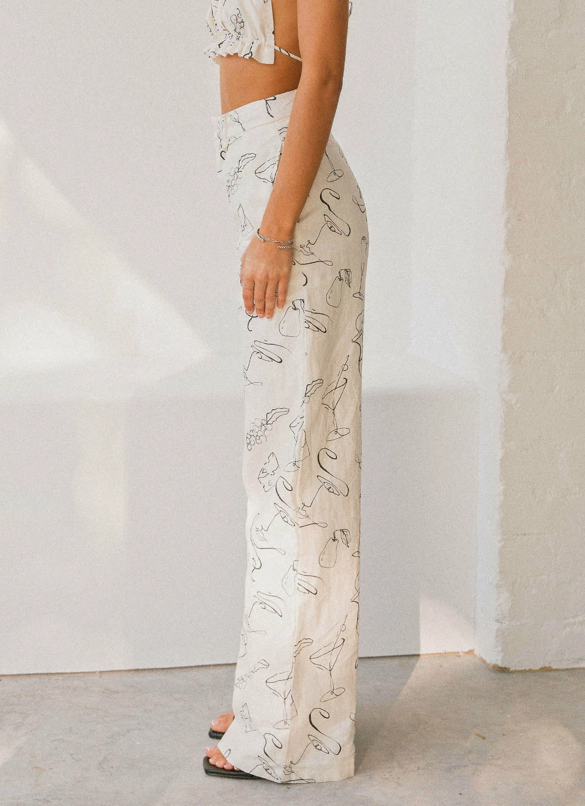Made for summer sunsets and handpicked for your next date night! The Sicilian Linen Pants are crafted in light, crisp linen and features our exclusive Peppermayo x Rikki Day print. These tailored pants are designed to be worn higher on the hips with pockets, fastened waistband and belt loops.