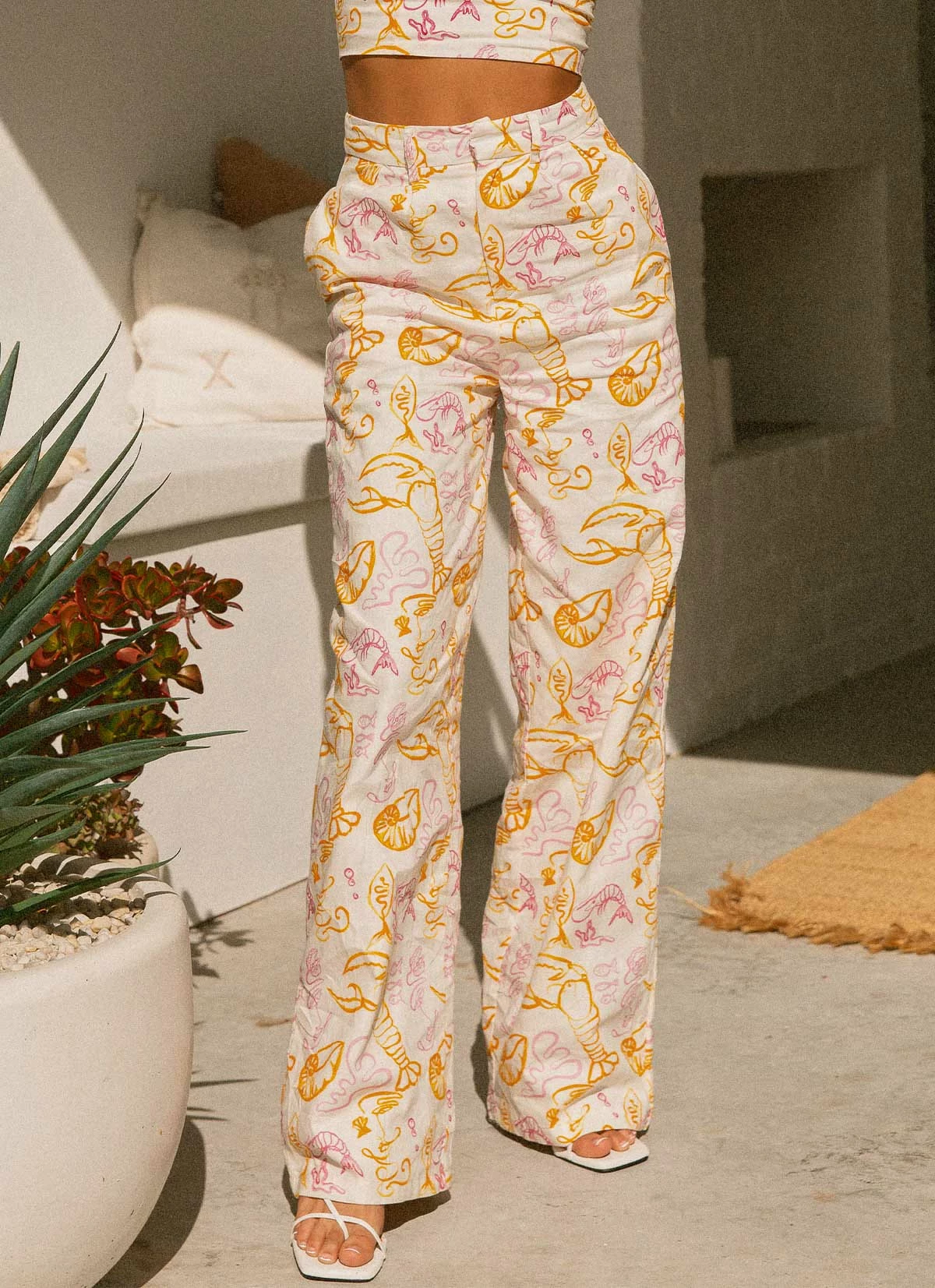 Made for summer sunsets and handpicked for your next date night! The Sicilian Linen Pants are crafted in light, crisp linen and features our exclusive Peppermayo x Rikki Day print. These tailored pants are designed to be worn higher on the hips with pockets, fastened waistband and belt loops.