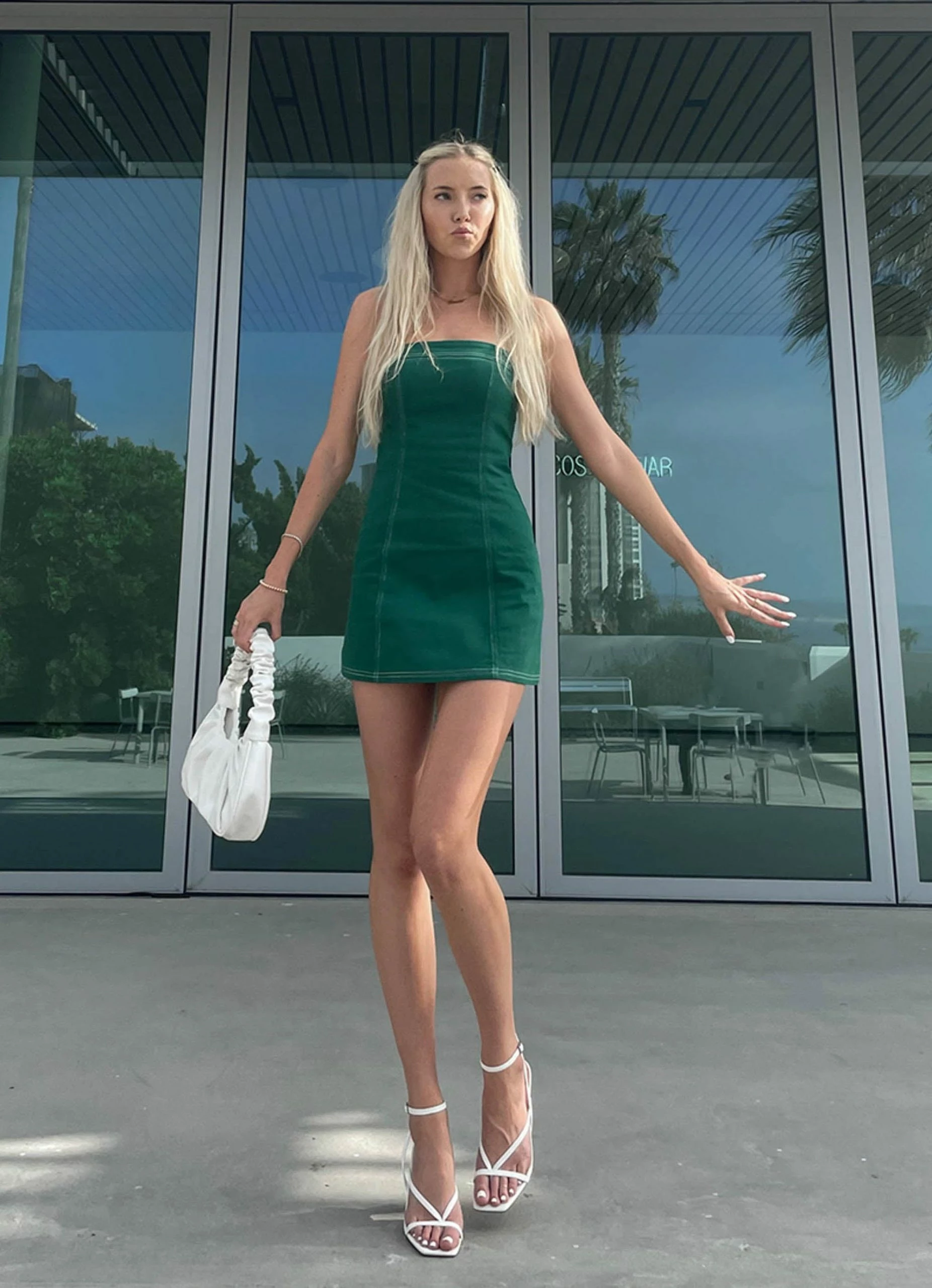 Level up your weekend uniform! The Weekend Uniform Drill Tube Dress is a fitted strapless style crafted in cotton drill in a striking military green colour. Make a statement with some chunky jewellery and your favourite platform mules.