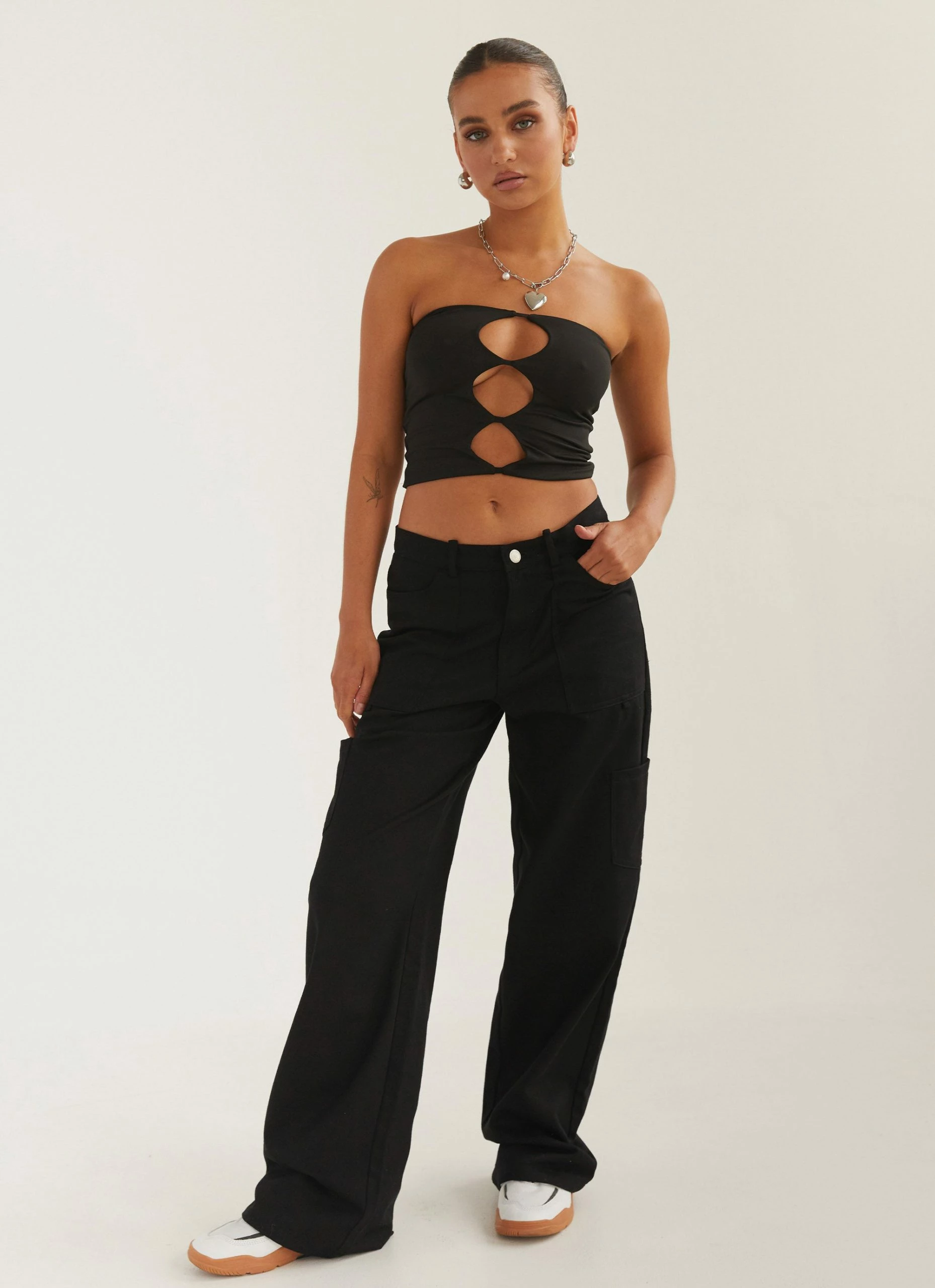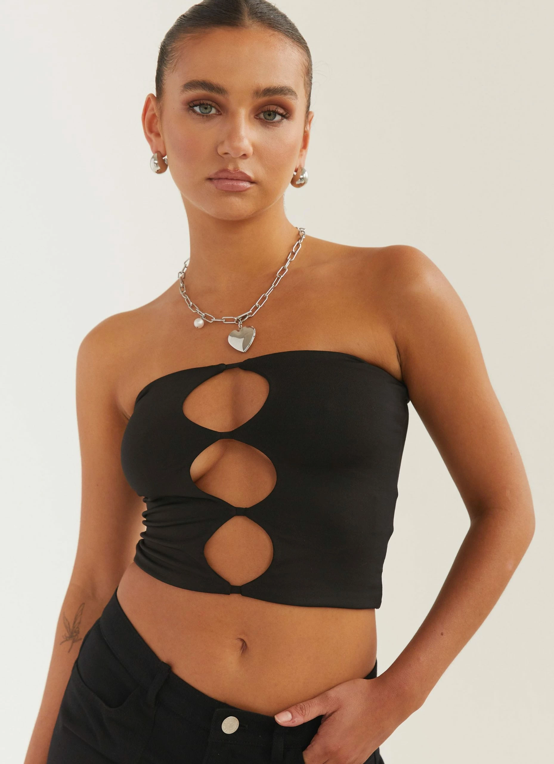Dare to be sexy in the Organic Forms Tube Top. A body hugging crop top featuring 3 keyhole cut-outs down the front of the body.