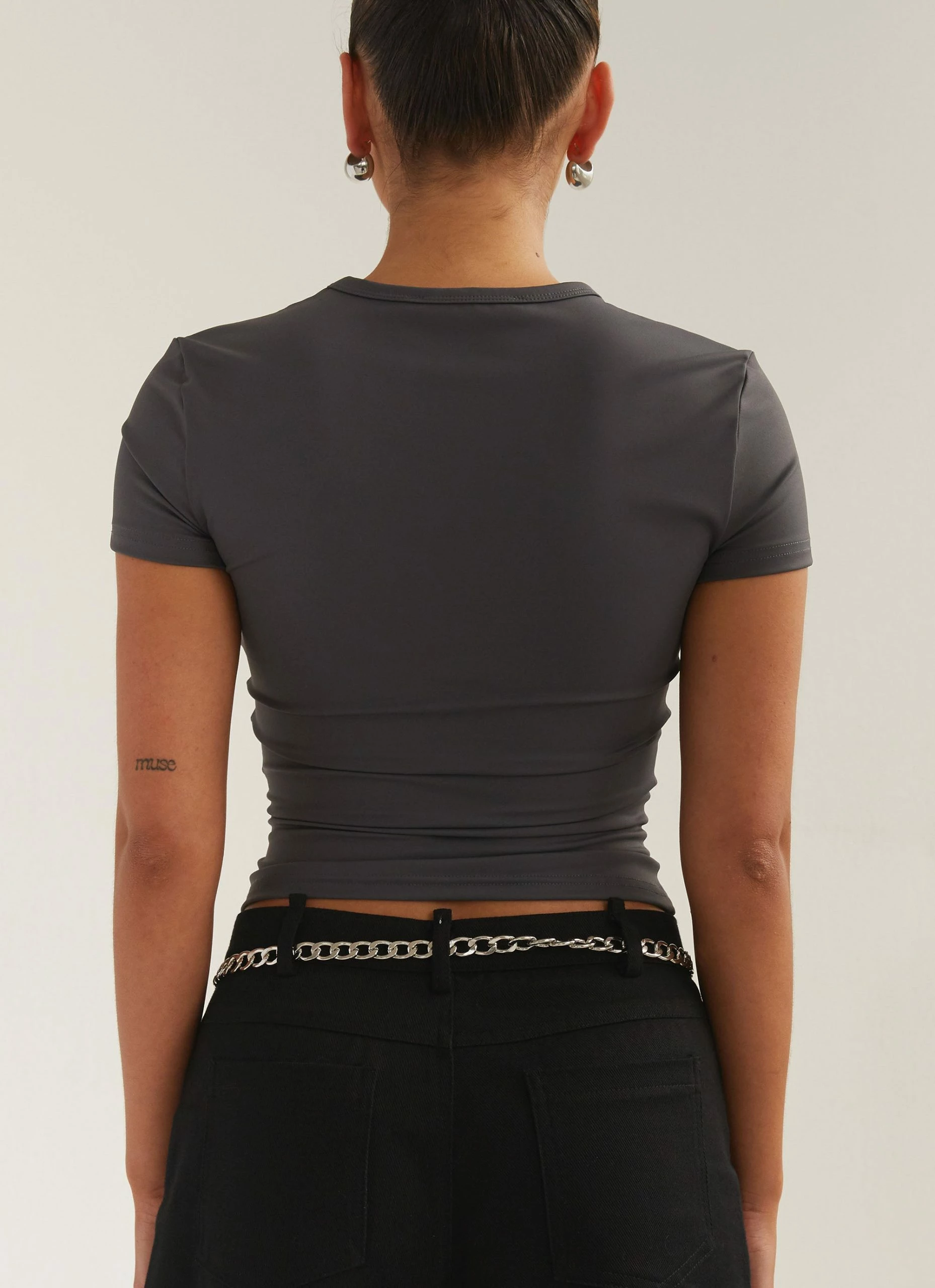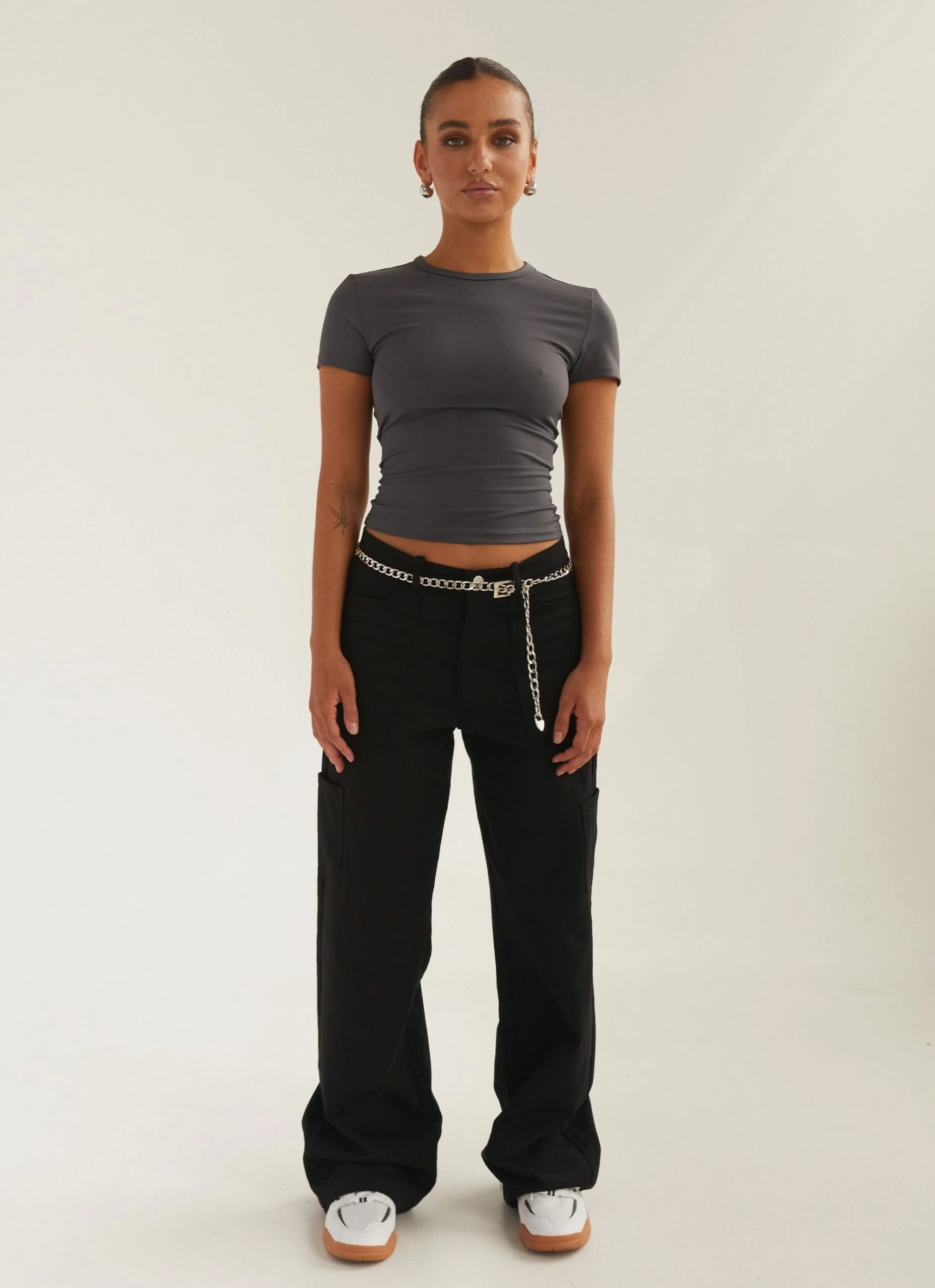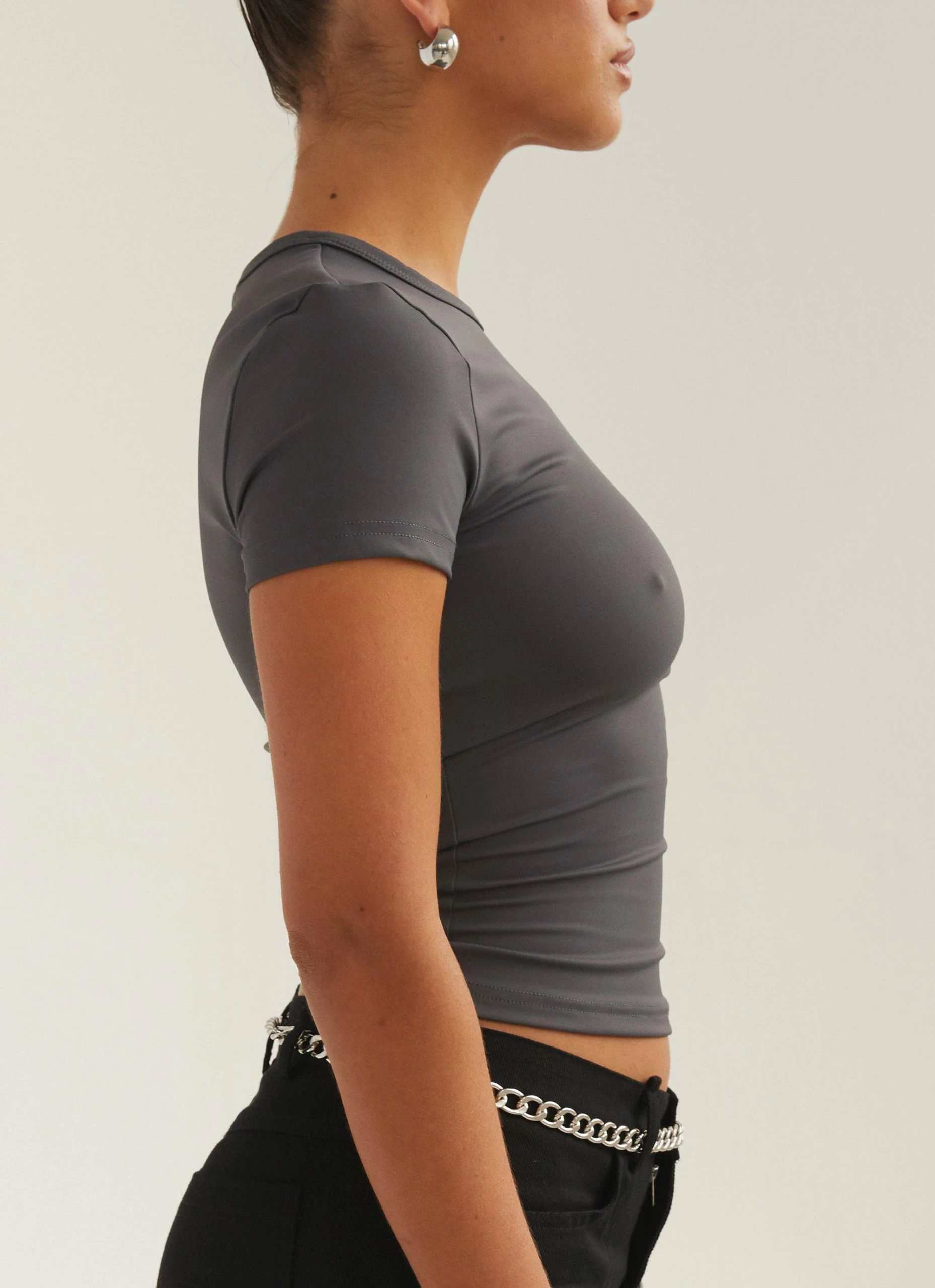 Elevate your basics wardrobe with the Solidify Me Baby Tee. A smooth and comfortable fit, this tee is a nod to the 90’s in a cute baby tee cut. Crafted in a neutral tone, making it the perfect everyday wardrobe staple and layering piece.