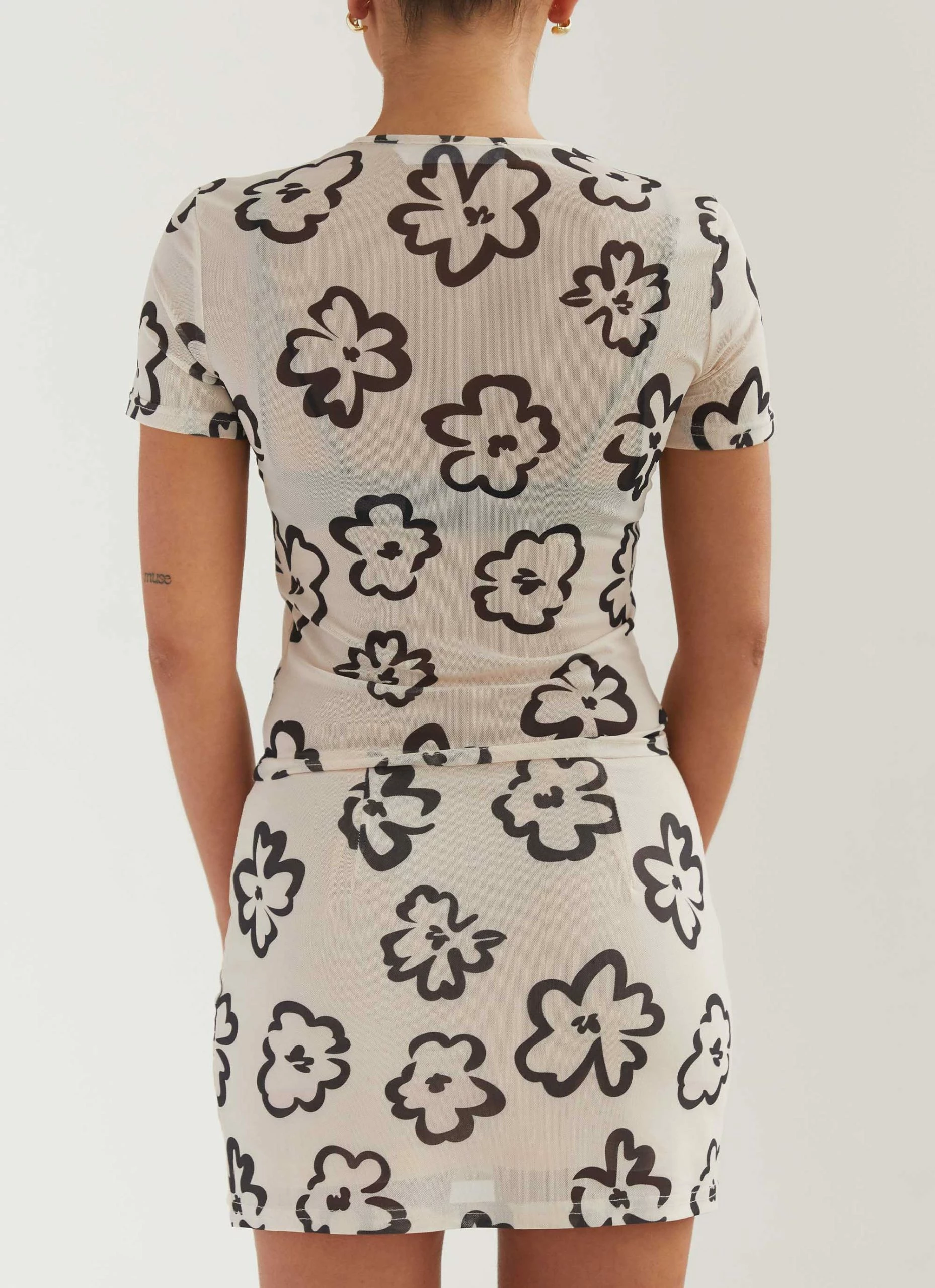 Keep it cute in the Structured Shapes Mesh Tee. A cropped, fitted tee crafted in soft mesh and featuring our exclusive Silk x Peppermayo floral motif.